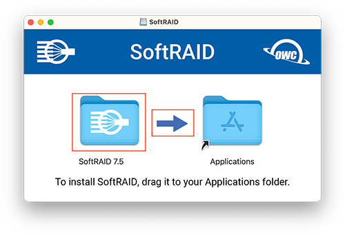 1. After downloading the latest version of SoftRAID, double-click on the SoftRAID disk image to launch the first installer window.