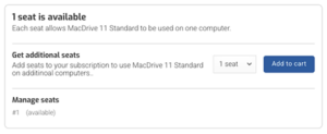 To add a seat to a MacDrive license, visit the License management page, enter your serial number, and there is an option to add seats.