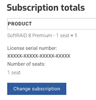 To add a seat to a SoftRAID license, you will need to login to your account and go to the “Subscriptions” section. Click on the active subscription and you will see “Subscription totals”.