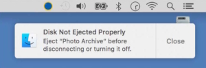 The result is the dialog box above, alerting you to an eject event. Disks ejecting can cause the volume directory to become damaged, so this is not something you want to allow without addressing.
