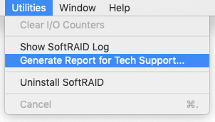 Note: If you are unable to launch the SoftRAID Application for any reason, your Customer Service Rep can give you instructions on using the terminal to save a tech support file.
