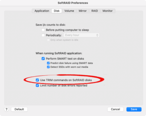• Disable TRIM for your SoftRAID volumes