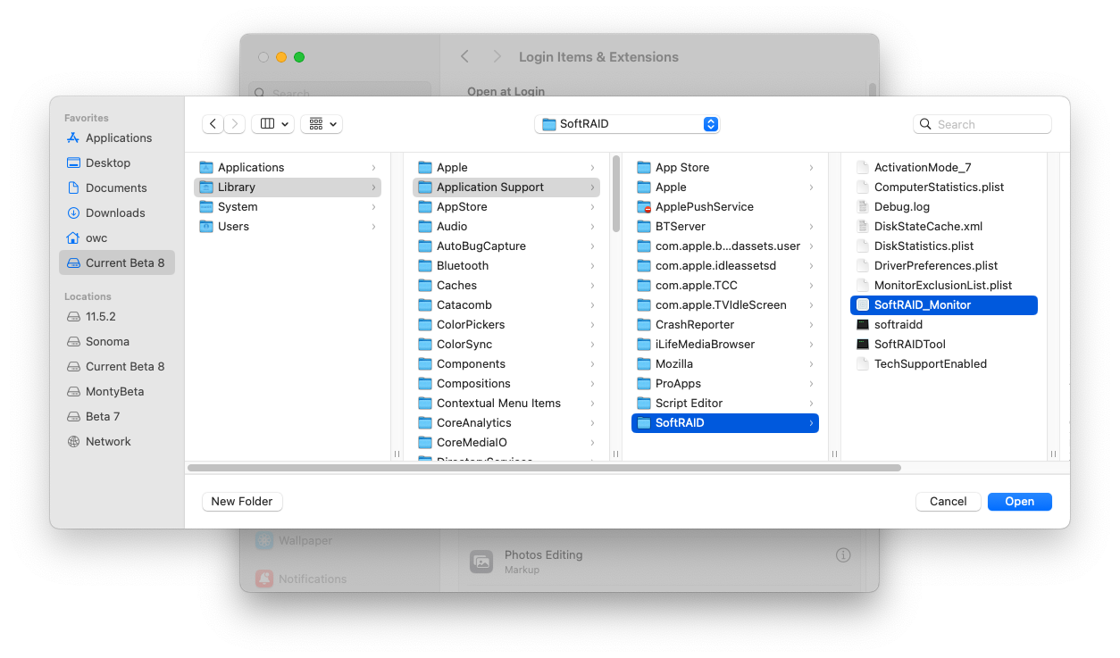 - Confirm that SoftRAID Monitor.app now appears in the Open at Login list